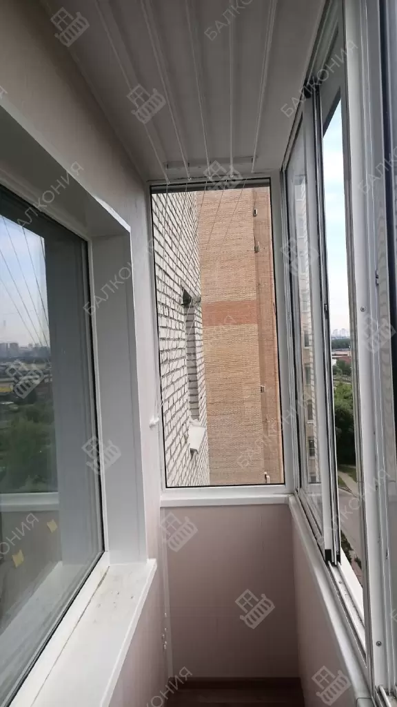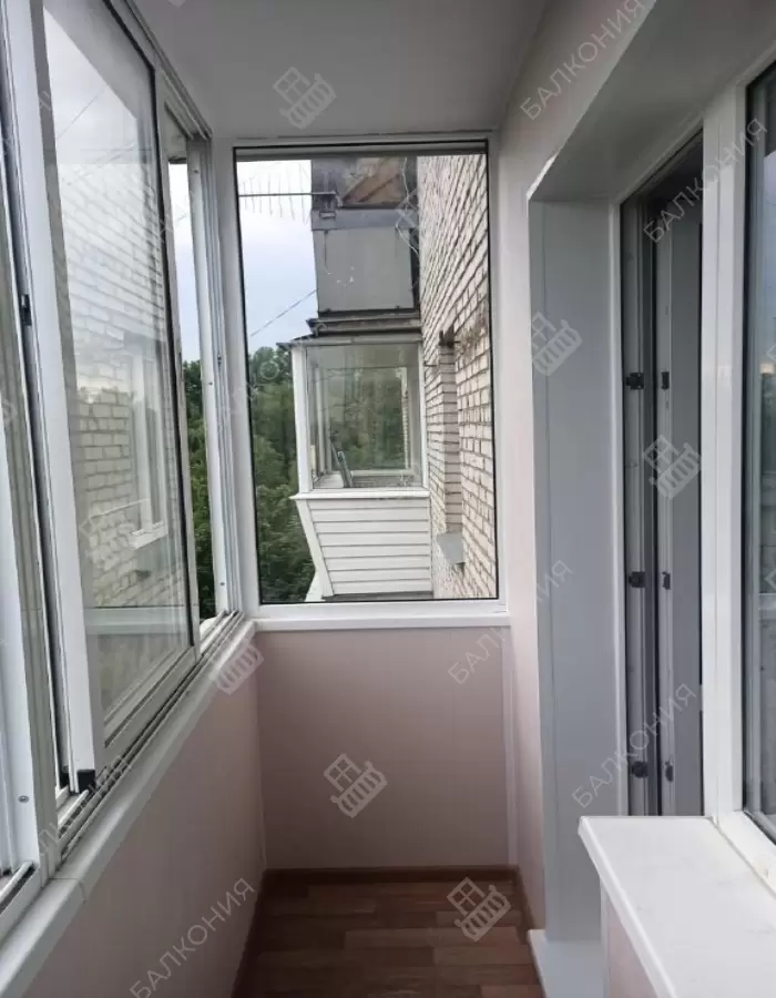 Произведена отделка балкона под ключ с холодным остеклением. Сделано остекление балкона алюминиевыми окнами PROVEDAL, в многоквартирном кирпичном доме. Отделка стен и потолка выполнена панелями ПВХ, полы — ламинат. Материал предоставлялся компанией «Балкония» согласно пожеланиям заказчика.