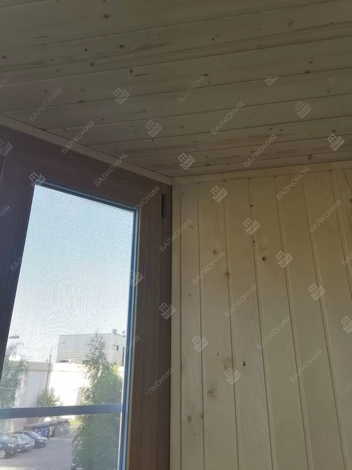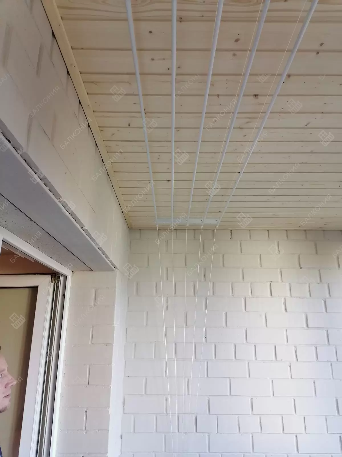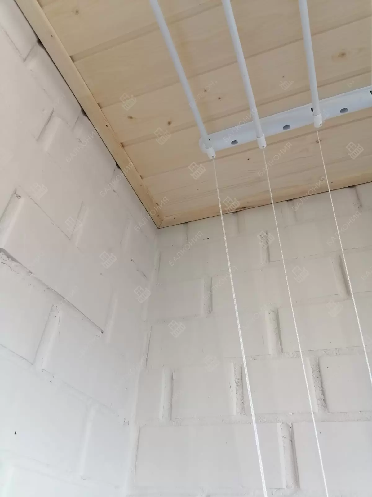 Сделано: отделка стен и потолка выполнена вагонкой, полы ламинат. Установлена потолочная сушилка. Материал предоставлялся компанией «Балкония» согласно пожеланиям заказчика.
