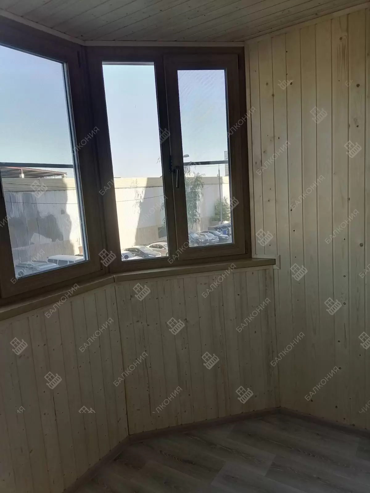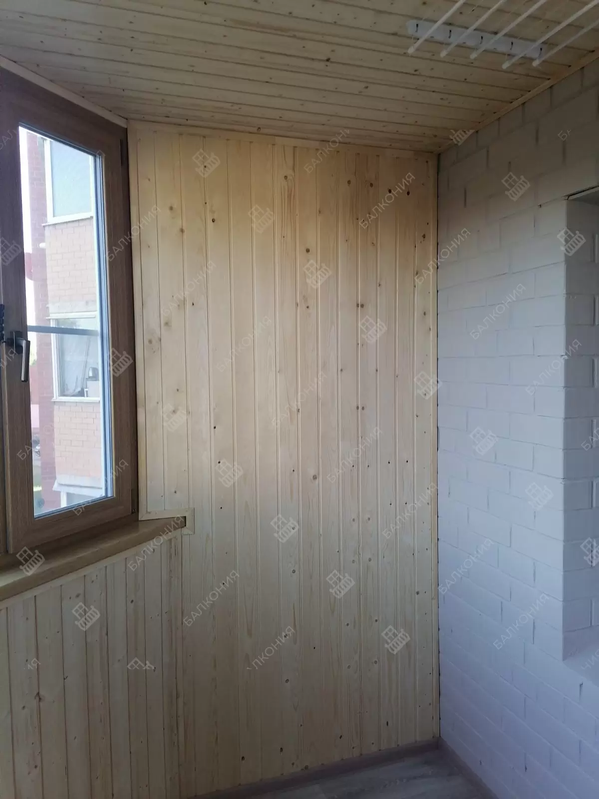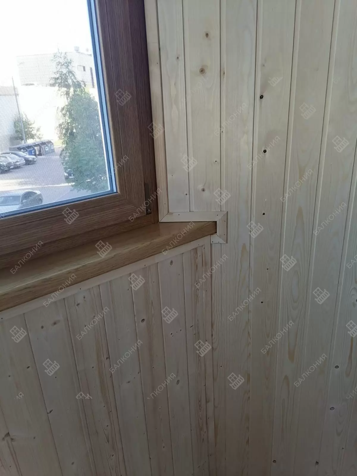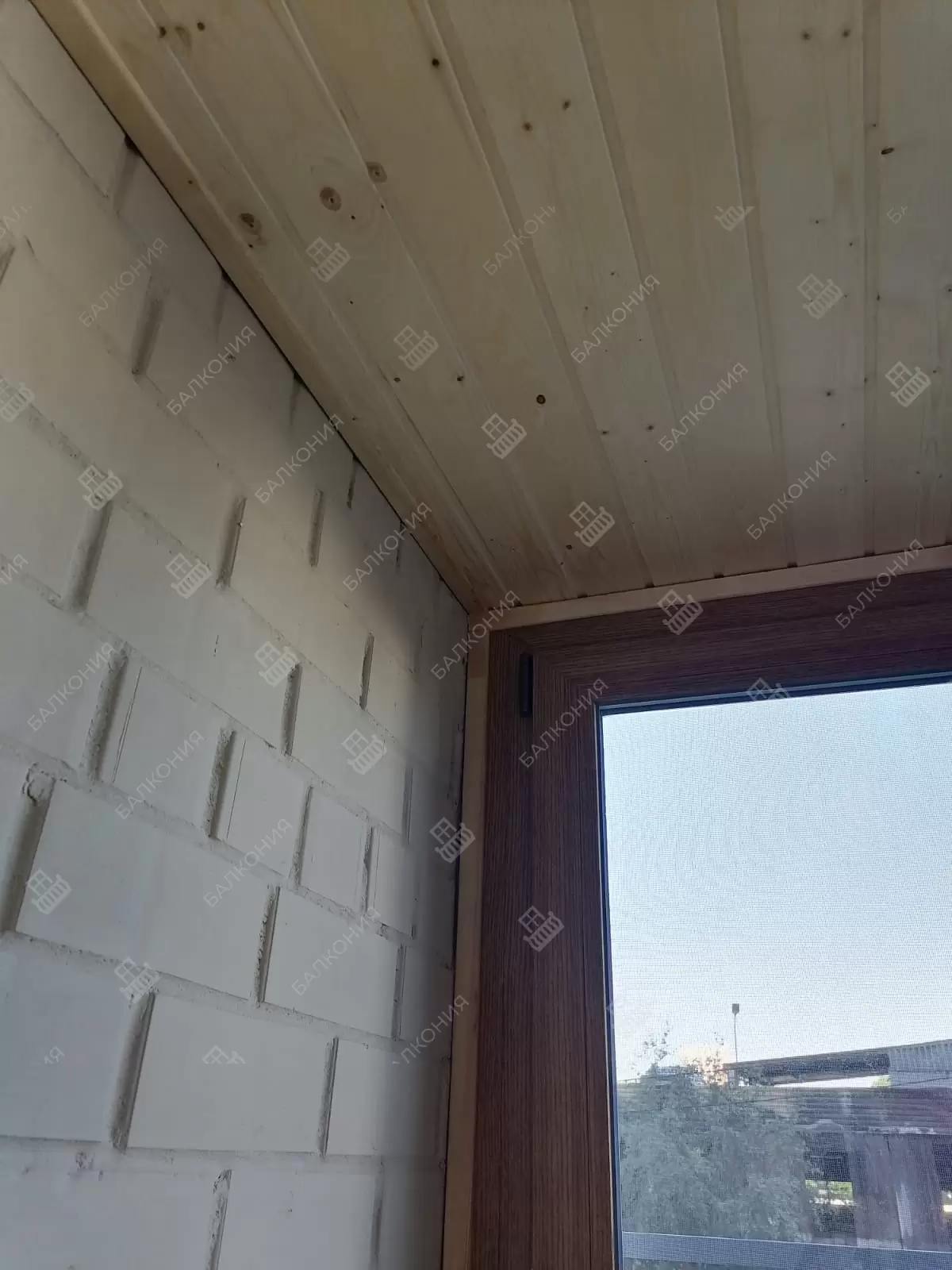 Сделано: отделка стен и потолка выполнена вагонкой, полы ламинат. Установлена потолочная сушилка. Материал предоставлялся компанией «Балкония» согласно пожеланиям заказчика.